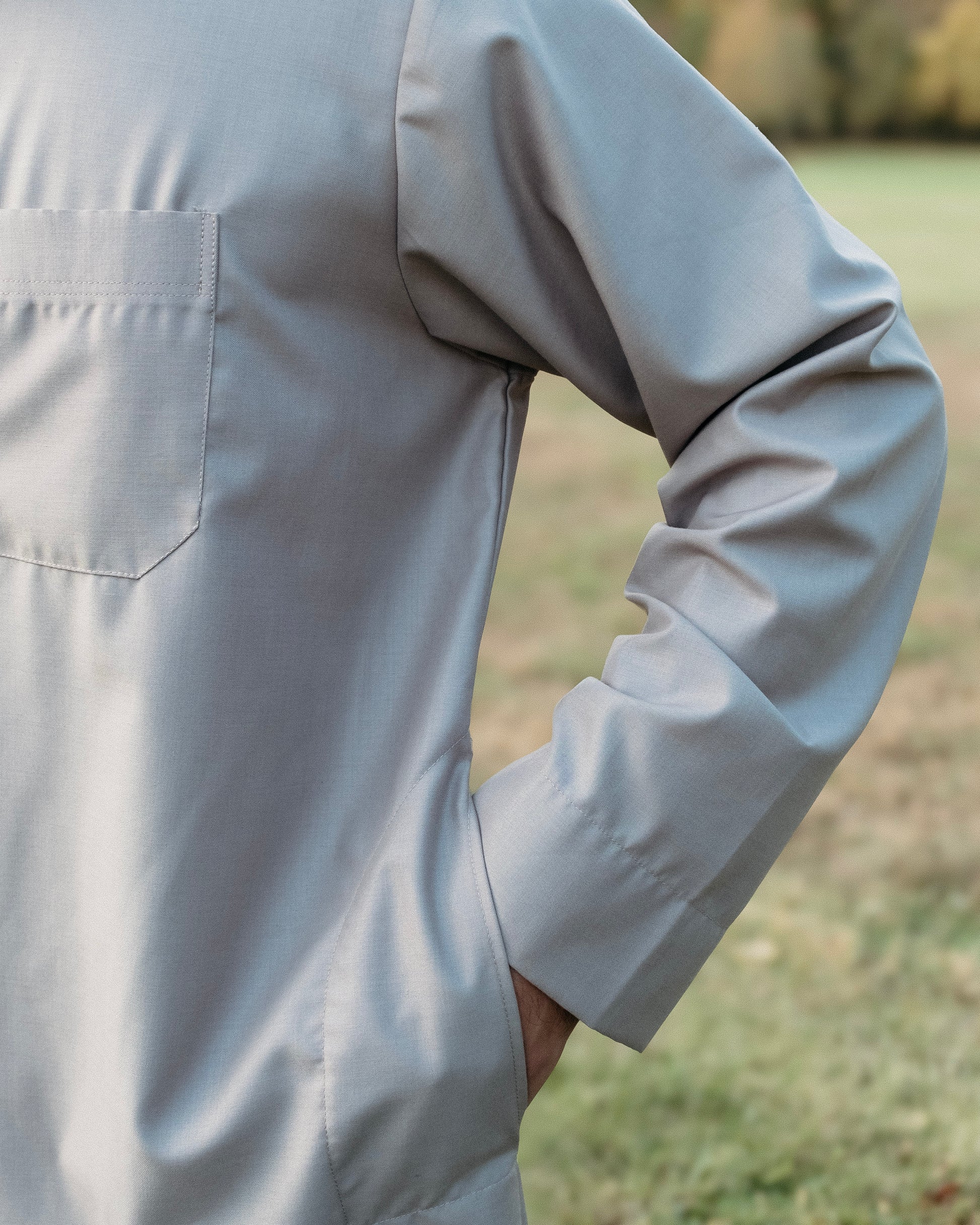 Designed with attention to detail, this thobe features a classic Saudi cut, providing a modest and elegant silhouette. Ideal for men who value both style and comfort in their everyday or formal attire.